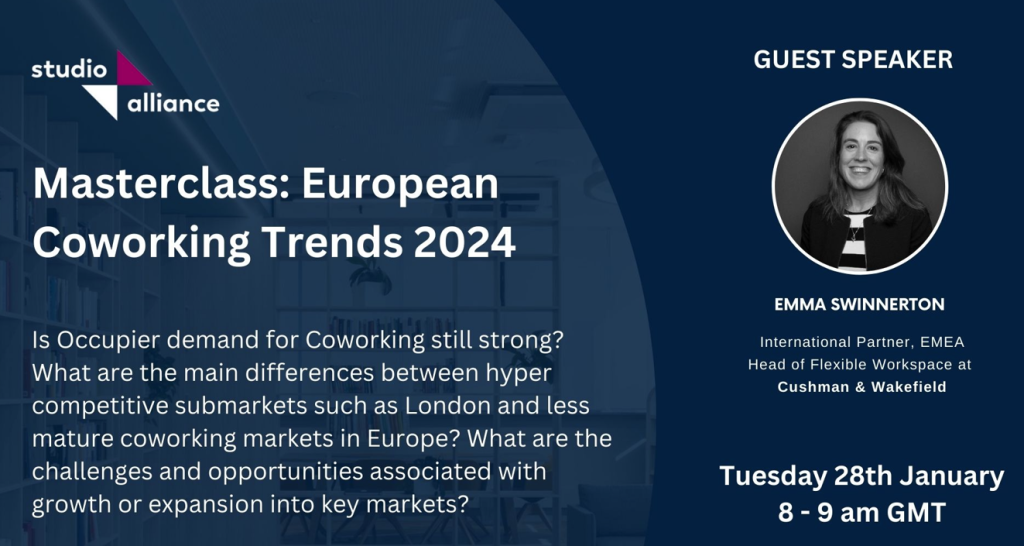 Geçtiğimiz günlerde Studio Alliance tarafından düzenlenen ilk Masterclass etkinliği kapsamında, Emma Swinnerton (Cushman & Wakefield, EMEA Head of Flexible Workspace) ile esnek çalışma alanları üzerine önemli bir oturuma katılma fırsatı bulduk.