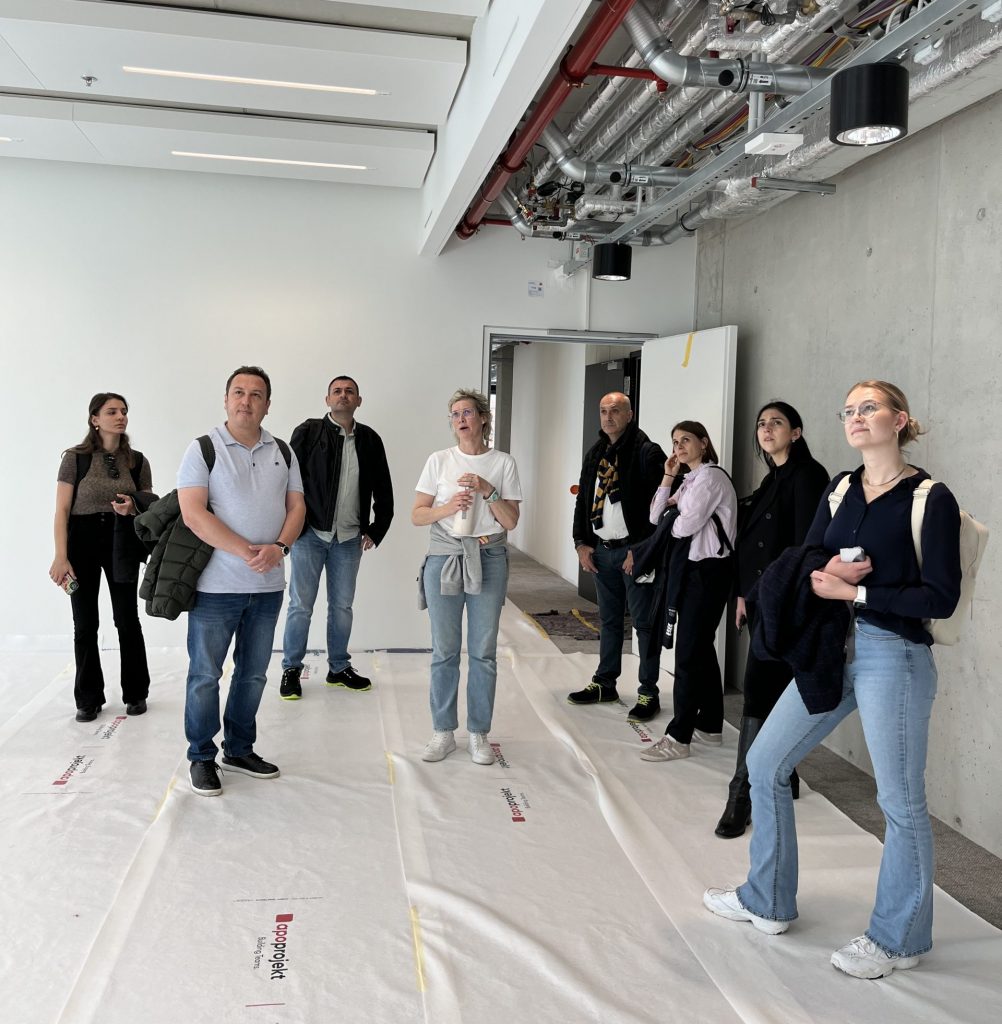Toplantılarımızın ardından, Apoprojekt’in aktif inşaat sahalarından birini ziyaret ettik. Bu ziyaret, yenilikçi tekniklerini ve titiz planlamalarını gözlemlememize olanak tanıyan aydınlatıcı bir deneyimdi. Şantiye turu, saha iş birliğinin ve en iyi uygulamaların değişiminin önemini pekiştirdi. Özellikle Lean Management sisteminin şantiyeye uygulanmasından etkilendik.